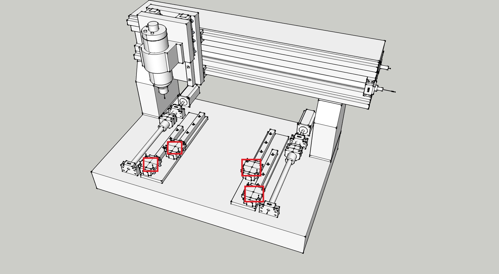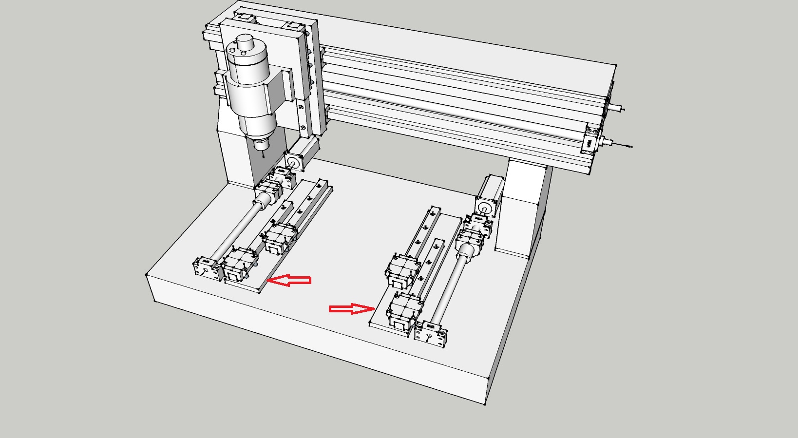 Винты купил под первую компоновку. Но там фрезеровки много, на стороне дорого выходит. Моторы есть 3шт 2,2Nm с драйверами, года полтора уж валяются от другого проекта не связанного с чпу. Шпиндель этот https://aliexpress.ru/item/32985780664. ... 33ed5Z2SJO . Вроде тоже 1Nm , но сохраняет момент до 12.000об\мин. Рельс 4 шт. Они длинной по 300мм, и на каждой по одной каретке. Две на одну ход маленький выходит.