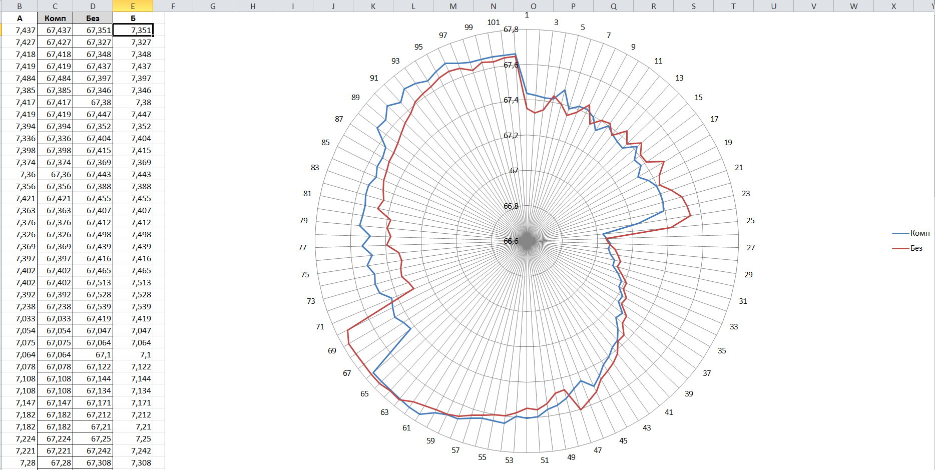 Тест №1 по часовой Тест №2 против часовой Получается овальность 0,9мм
