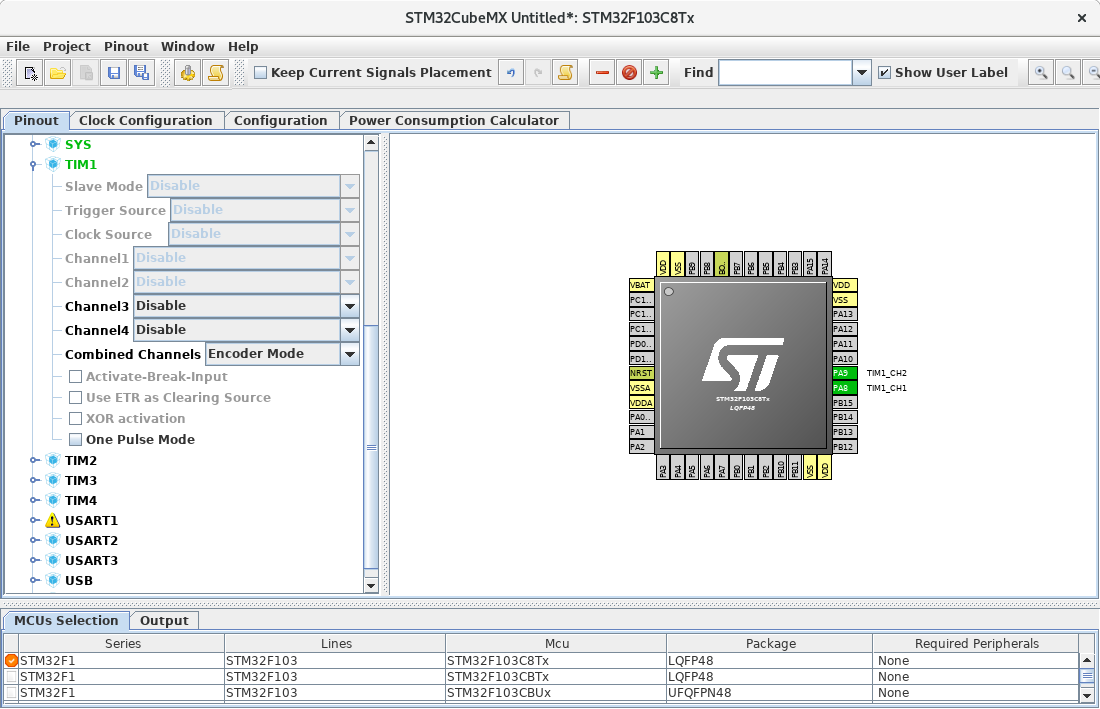 В любом stm32 достаточно только настроить периферию потыкав мышкой в STM32CobeMX и в получившийся код просто добавить вывод значения счётчика...aftaev писал(а):Сразу видно не работал с Ардуиной и энкодеромМы как то энкодер на 100импульсов прикрутили к Ардуино + экран, так Ардуины Mega не хватило, и хотели ставить DUE (самая мощная Ардуина). Мож у тебя скоростя будут по медленее