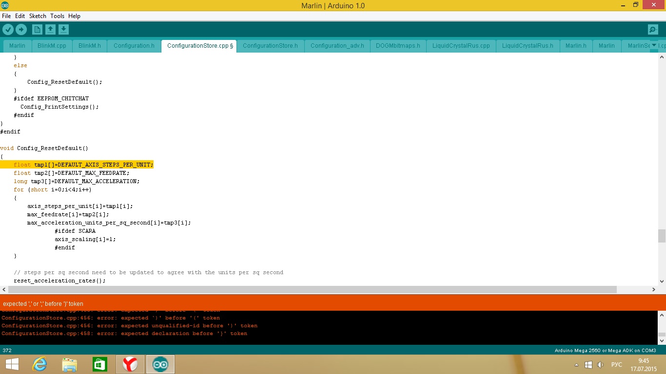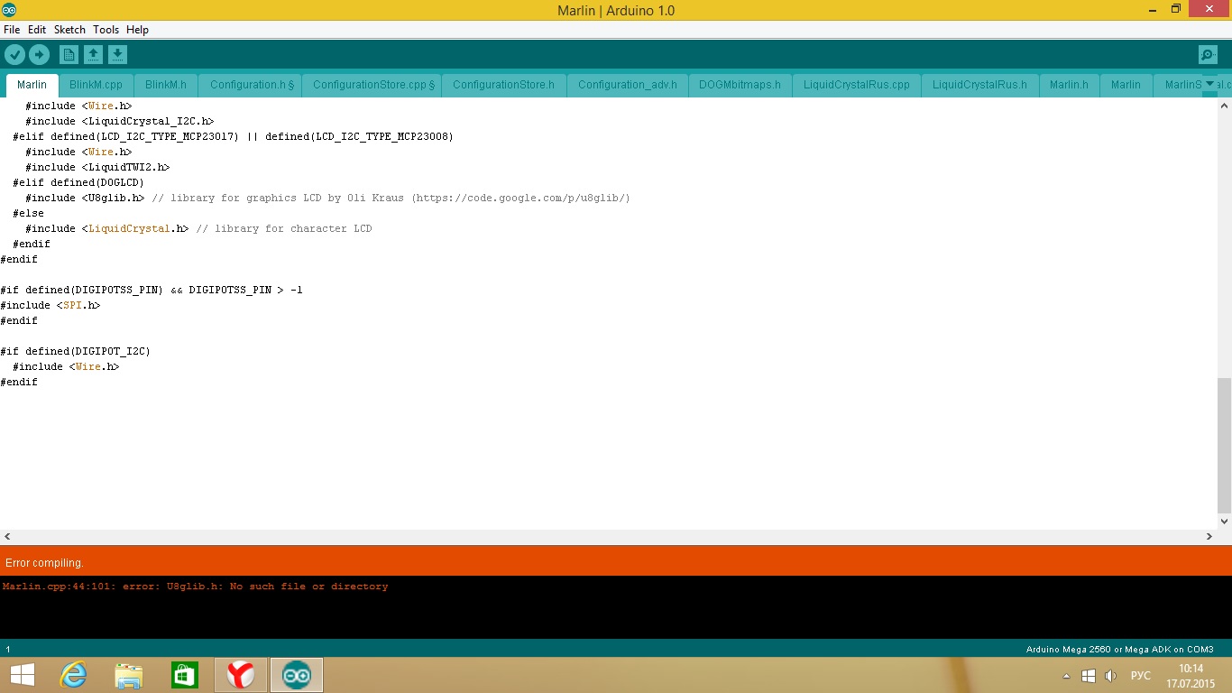 А какой марлин компилил? У меня последний без ошибок собрался. И ардуино у тебя дюже старый )