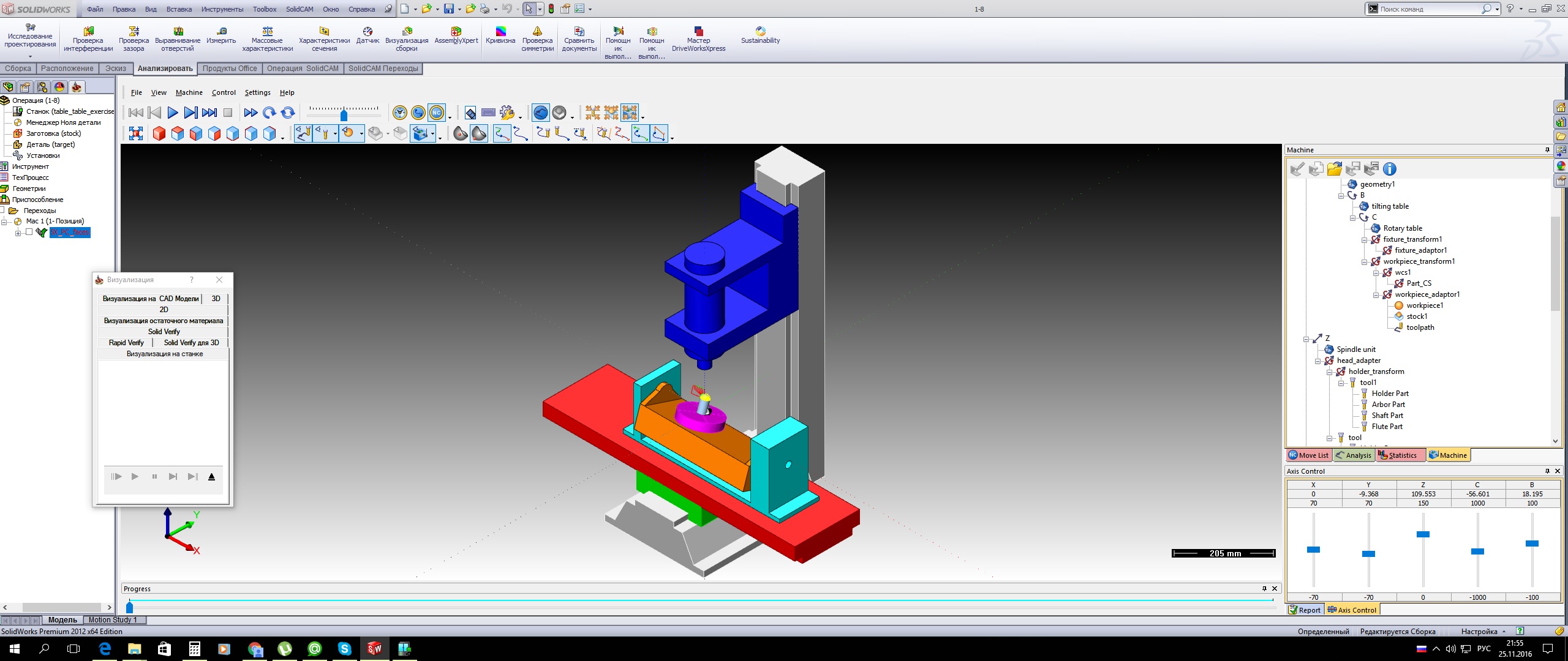 знающие люди подскажите, просьба не пинать, для меня дело новое, в общем решил я к своему станку сделать 5ю ось, решил начать с визуализации, все нарисовал данные засунул в настройки стонка, отладил визуализацию, всё крутится всё вертится, заготовка обрабатывается, но на визуализации не видно патрона и фрезы, где искать ума не приложу вроде всё уже облазил, за основу взял станок table_table_exercise там всё отлично отображается