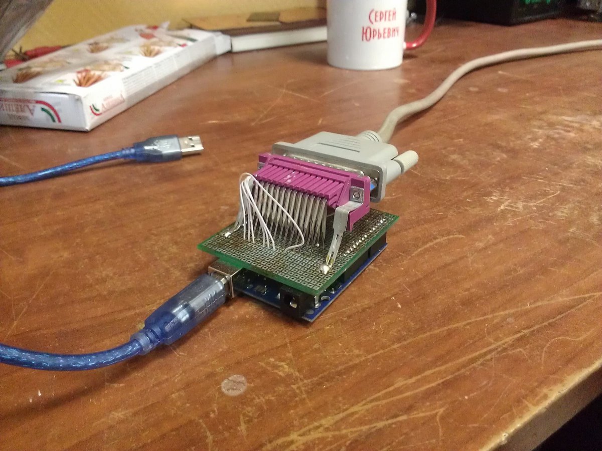 На этот шилд напаял LPT разъем от материнской платы, и получилась вот такая штука: