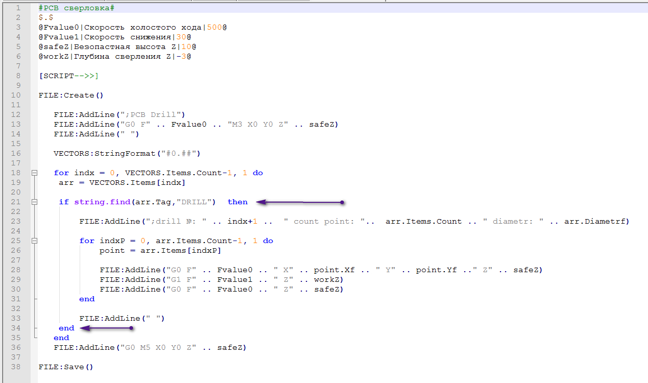 Вариант 2: В каталоге с программой, есть папка "profiles", внутри которой есть файл: PCB - сверловка.prof, если этот файл открыть любым текстовым редактором, например блокнотом, и удалить указанные строки (№21 и №34), то сверловка так-же должна нормально формироваться. С программой идут файлы пресетов, и профилей, как демонстрационные, и самый простой вариант это сделать копию используемых файлов, назвать их по своему, и пользоваться ими в своих задах, что-бы с очередным обновлением не терять свои индивидуальные настройки. Т.к. обновление это просто копирование новых файлов, в тот-же каталог, с заменой существующих.