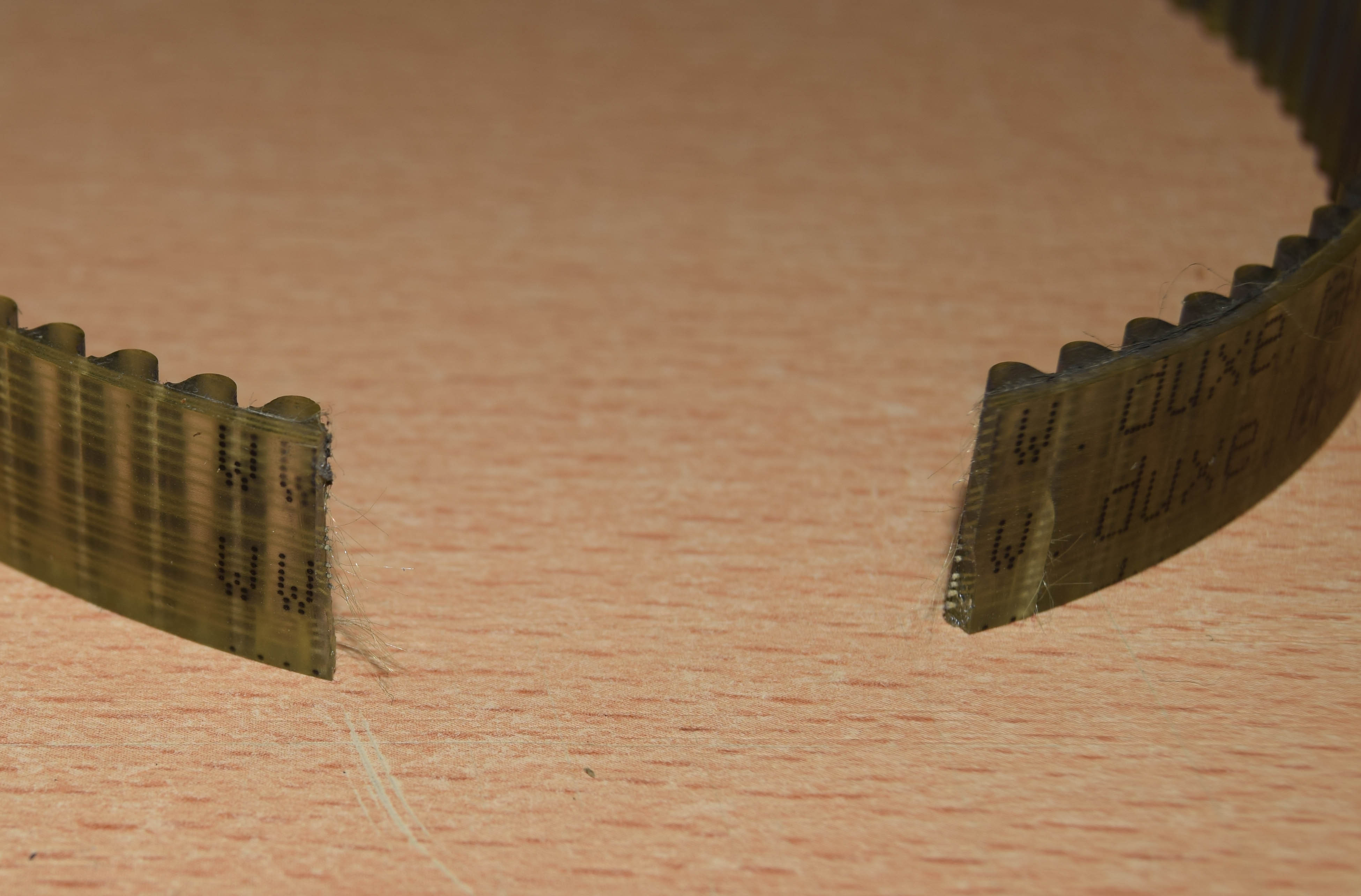 Внезапно оказалось, что мой станок очень даже нужен людям, и за месяц накопилось много работы, и так же внезапно после выполнения накопленных заказов у меня обрывается замкнутый ремень на оси Y, обрывается он второй раз. Первый протянул 7 месяцев, второй всего 2. Подходящий ремень даже из России придётся ждать минимум неделю, а из Китая - после праздников, поэтому, как это принято сейчас называть в интернете - "лайфхак":