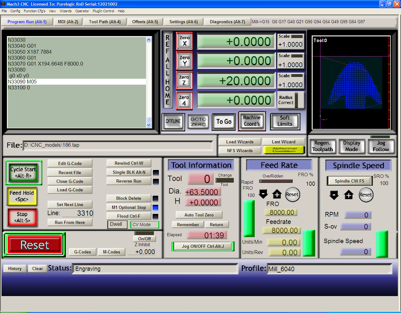 А какая частота в Mach3. И если возможно скинуть файлы настроек Mach3 .чтоб я тебя не пытал расспросами.