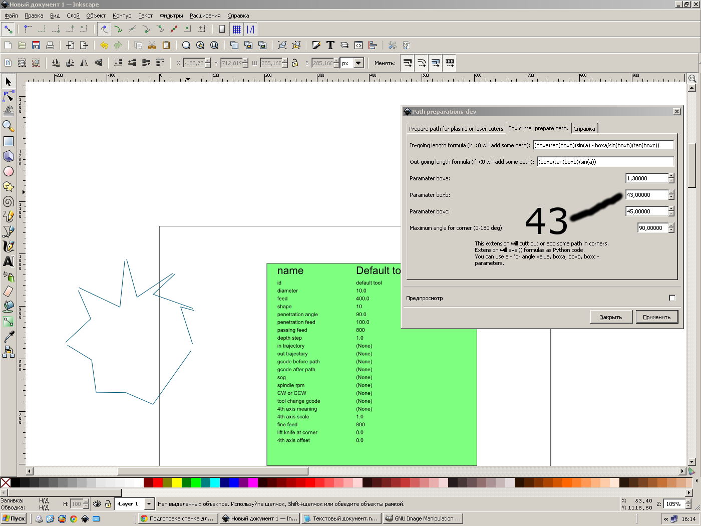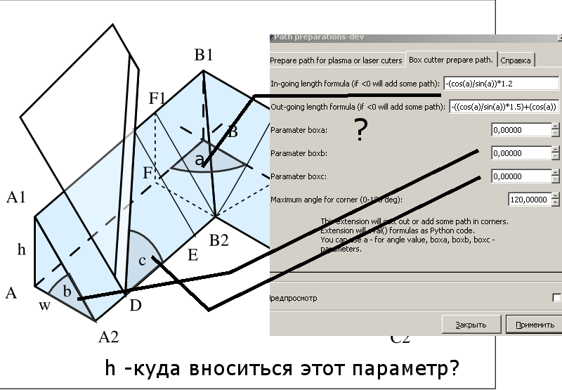 параметры boxa-boxc нужны, чтобы каждый раз при смене толщины картона или угла наклона ножа, не менять формулы, а просто поменять значения параметров.