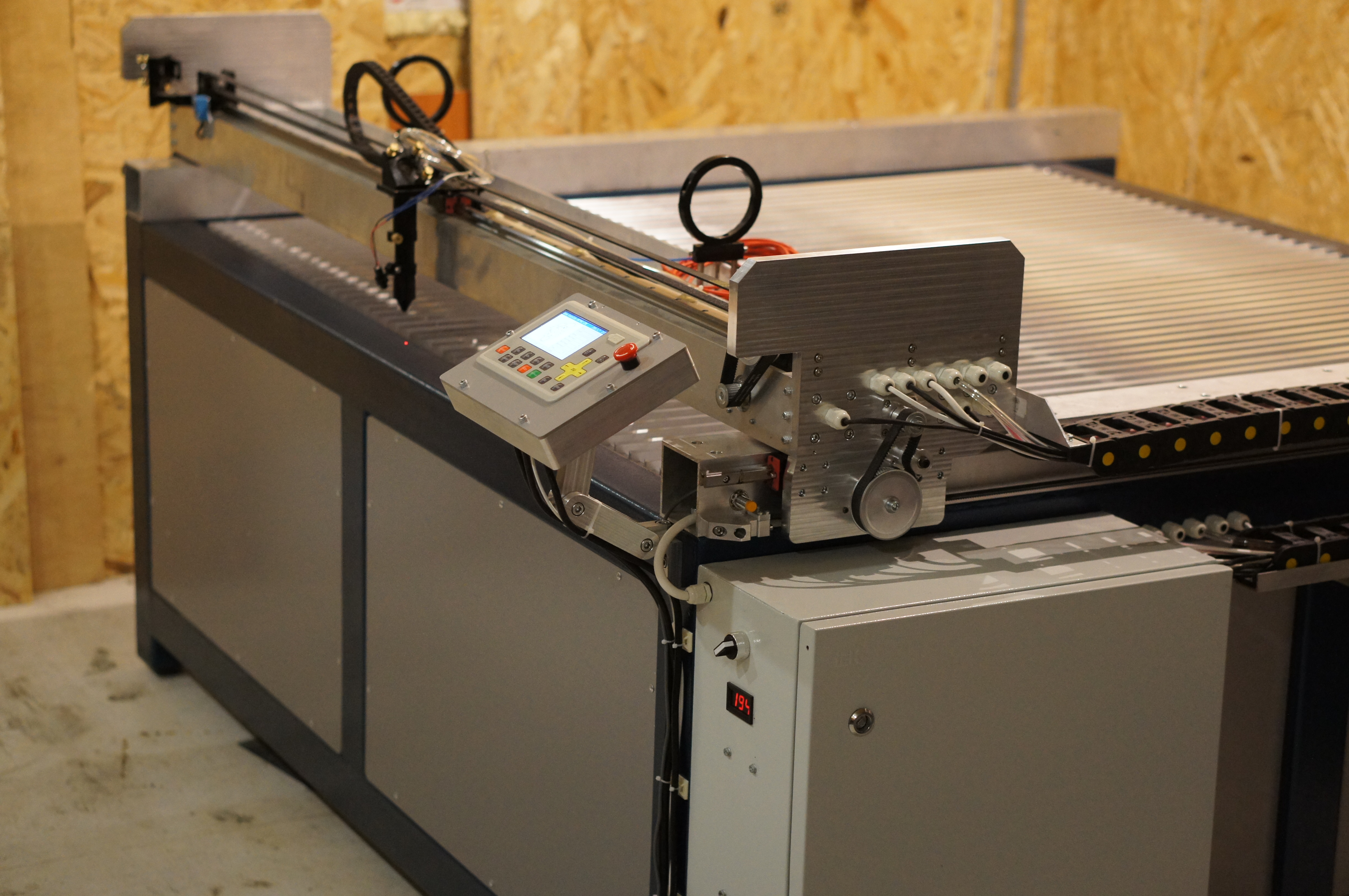 Т.е. при запуске резки автоматически включается подача воздуха. Так же пильнул две боковины портала: На местном рынке заказал два листа металла, из которых впоследствии согну крышку на портал.