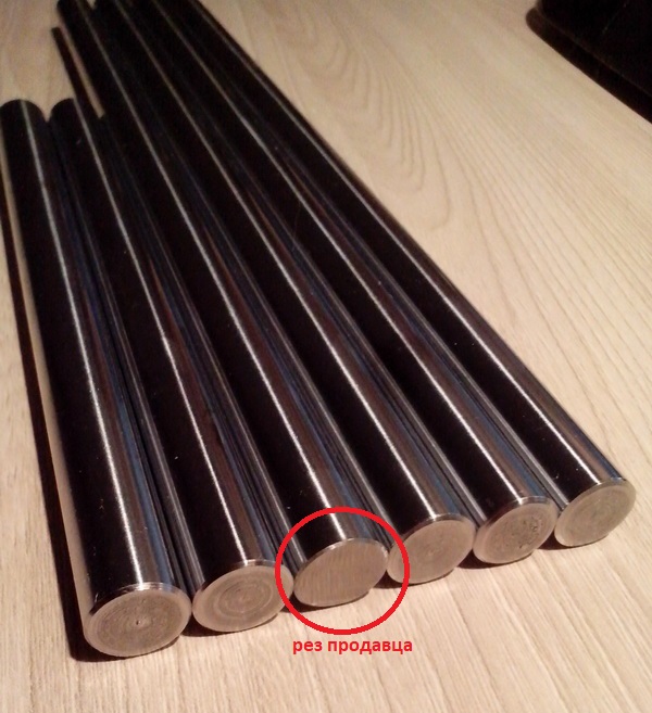 Получил свой вал на 12x1500. Сталь "правильная". Обрезка в размер на стареньком тв-4(потратил 5 часов :hehehe: ). Цементированный слой около 2мм. Указал размеры,которые у меня вышли, может кому пригодится. Торцы сверлить не стану - использую зажимы SHF12 или изготовлю их аналоги.
