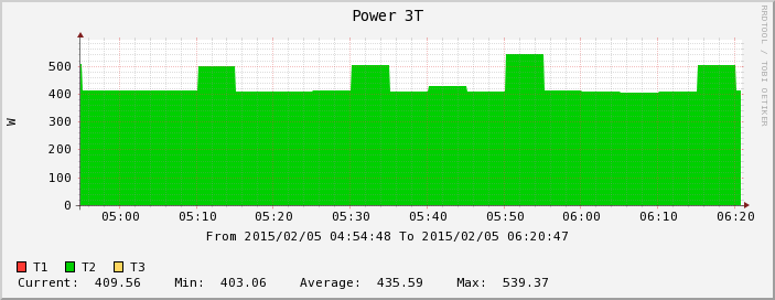 вот тут все домашние точно спят, работают только всё, что на фотке + 3 компа (2 моих рабочих и один на стенде для LinuxCNC), ну ещё всякие телеки в стендбае, wi-fi точка, базовая станция DECT, охранная сигнализация, периодические всплески - это компрессор холодильника.Kopyloff писал(а):А сколько этот датацентр в общем энергии потребляет? Столько потребителей в розетки воткнуто..