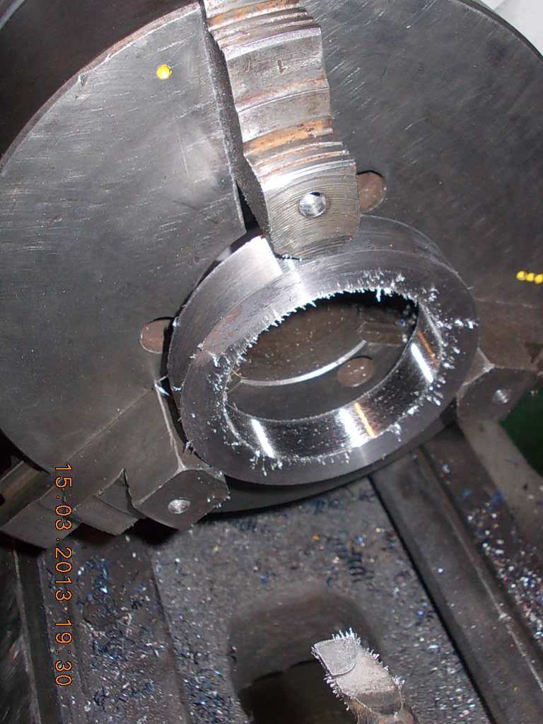 Первая стружка на восстановленном станке. Кулачки еще не шлифованы. Кольцо для шлифовки.