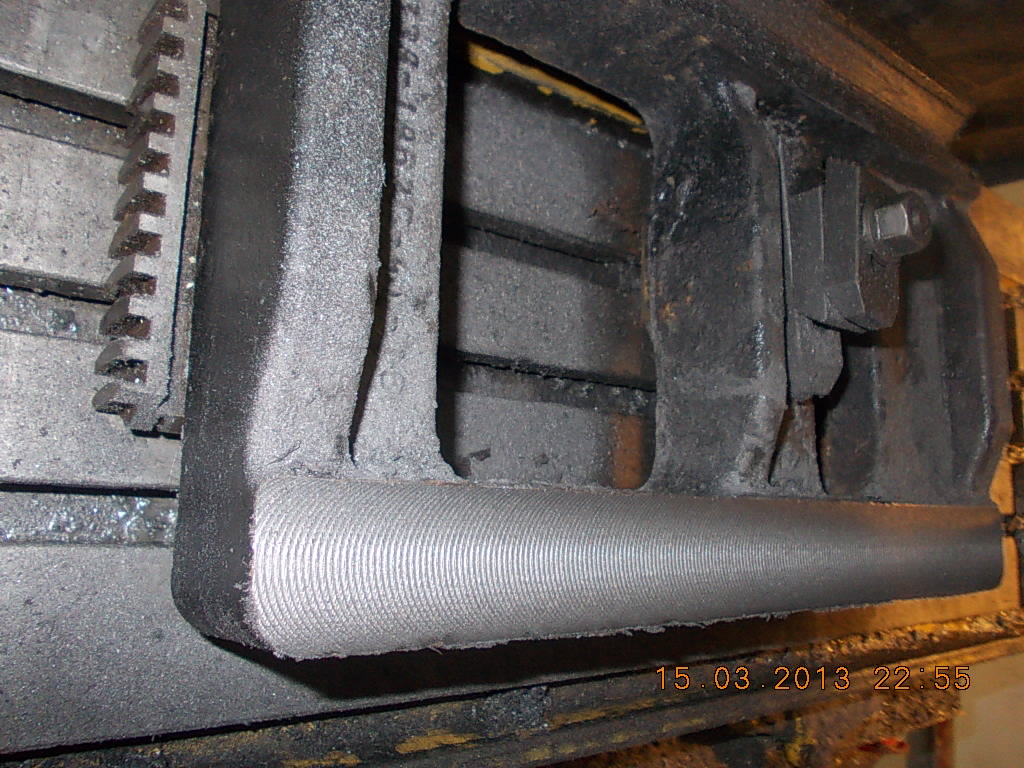 Снял заднюю бабку. Хорошо видна выработка на 2х поверхностях