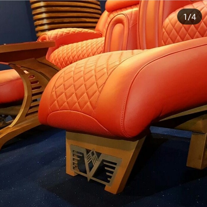 Это не космический корабль... Это домашний кинотеатр. Все подвесные конструкции, декор стен, потолка, мебель, выполнены нашей фирмой и в основном на ЧПУ. В этот кинотеатр были нами разработаны и изготовлены на ЧПУ колонки, ранее опубликованые мною