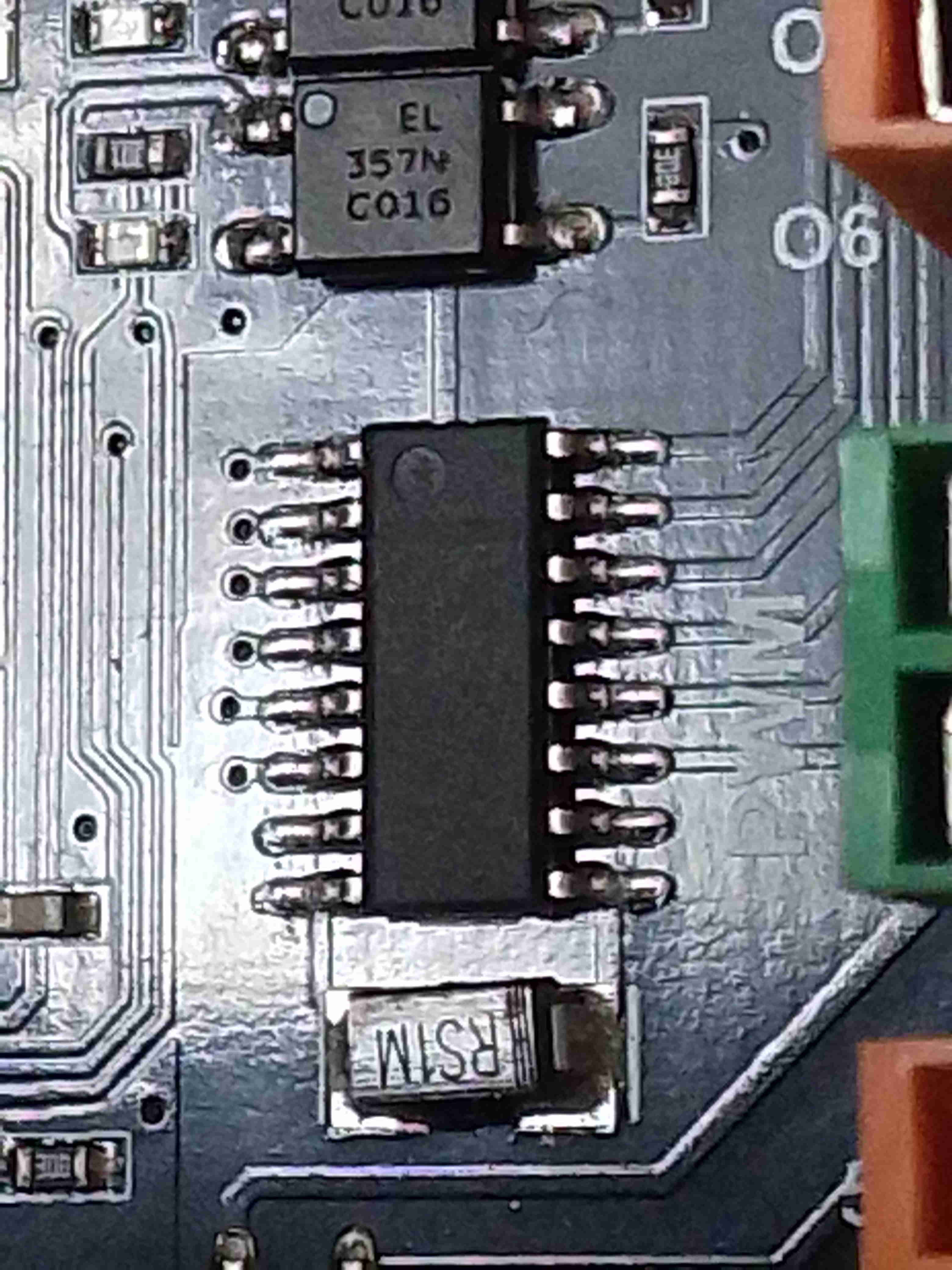 Сегодня полдня разбирался, почему на выходах нет никаких сигналов. Светодиоды на плате показывают, что всё должно быть как положено, а на выходах ничего. Оказалось, что на микросхему ULN2003A приходит только "+" , а "-" на 8 ноге нет. И нет даже дорожки ни сверху платы, ни снизу. Это же двусторонняя плата. Пришлось перемычкой соединять "-" стабилизатора 12 В и 8 ногу микросхемы.