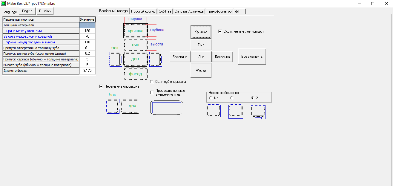 Да, ещё ... в Простом корпусе и Боковинка сохраняется в настоящем dxf, который читается GGEasy. Так что и это можно использовать для облегчения своей работы. Но маленькая ремарка, на черном (если он таковой) фоне контуры dxf не будут видны по умолчанию в GGEasy (свежайшая версия). Надо изменить цвет, кликнув правой кнопкой мыши по прямоугольнику левее dxf...