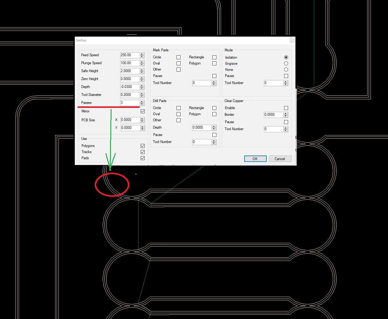 Скажем так, у меня в гербер файле есть дорожки уже с точкой привязки и выбран гравер, где кнопка, чтоб сразу получить Г-код фрезеровки? Как по мне, то много непонятных лишних телодвижений еще требуется.