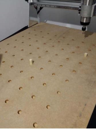 И уже нарезал правильных отверстий в столе.