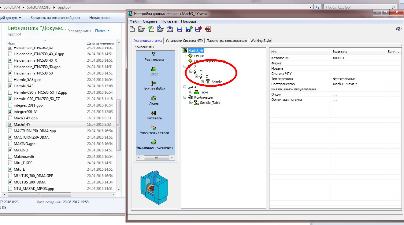 У меня уже в Solid-е набран станок и поворотная ось.