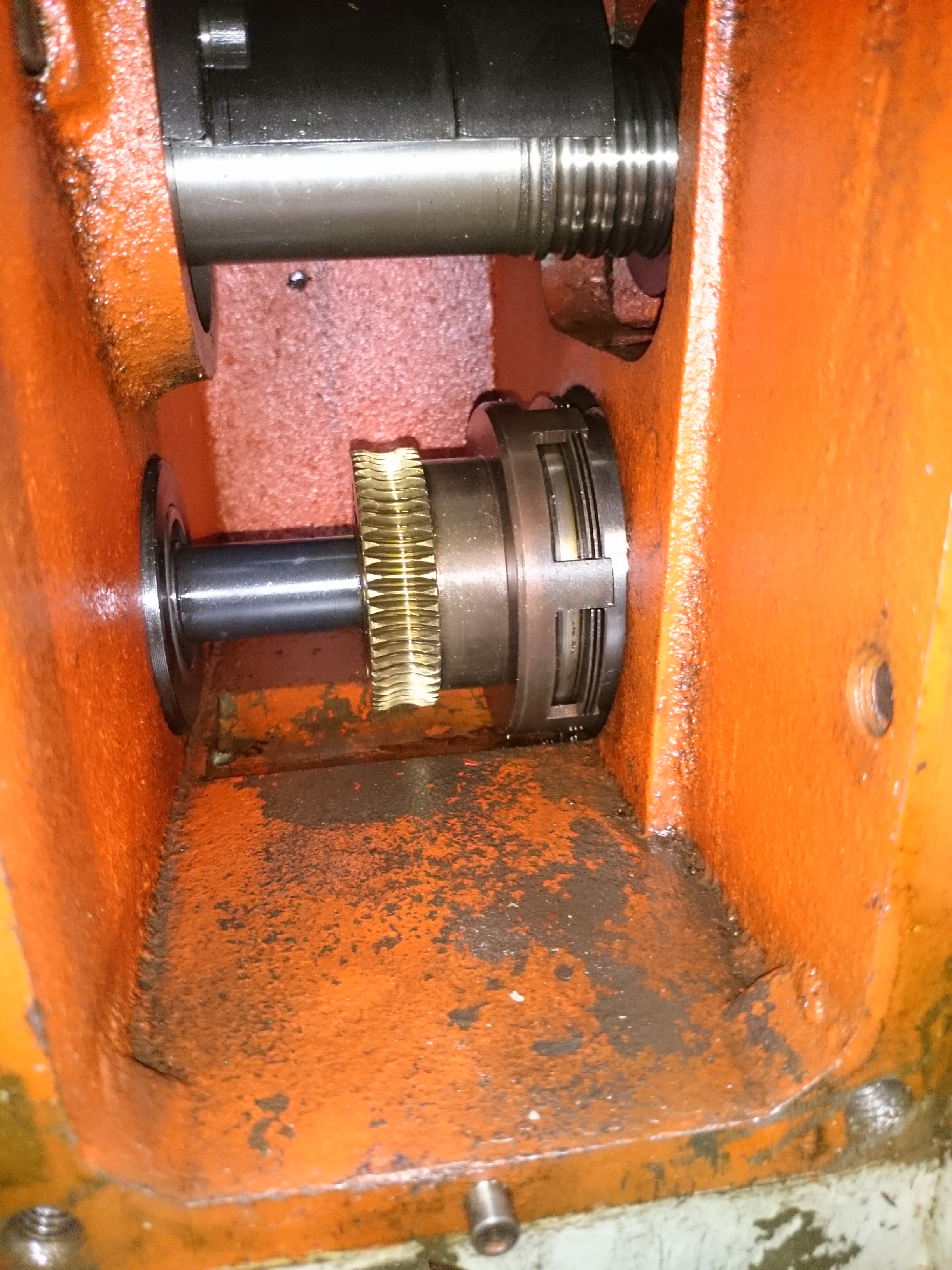 Непонятно предназначение вот этого узла рядом с коробкой, правее и выше стоит. на валу мотора червяк, червячное колесо на валу привода шпинделя, посадка через фрикционную муфту.