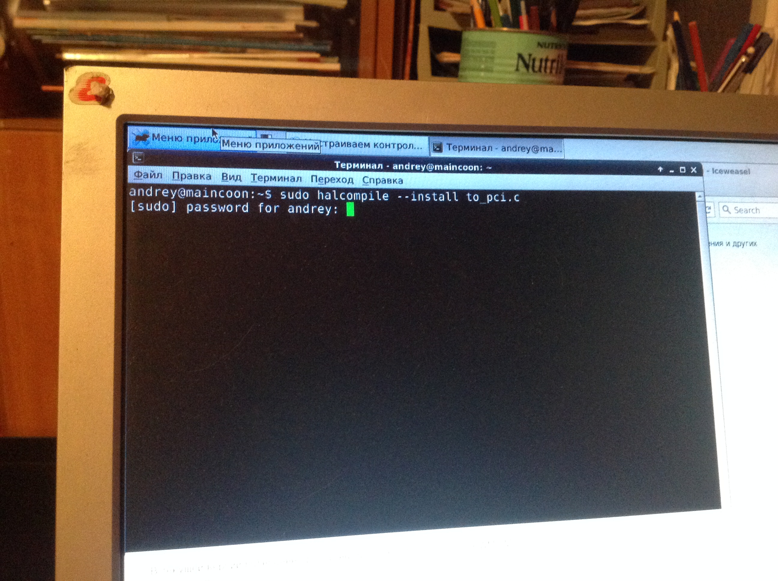 Набрал в терминале, нажал ввод. Вот что получилось. Просит пароль, но при этом ничего не вводится