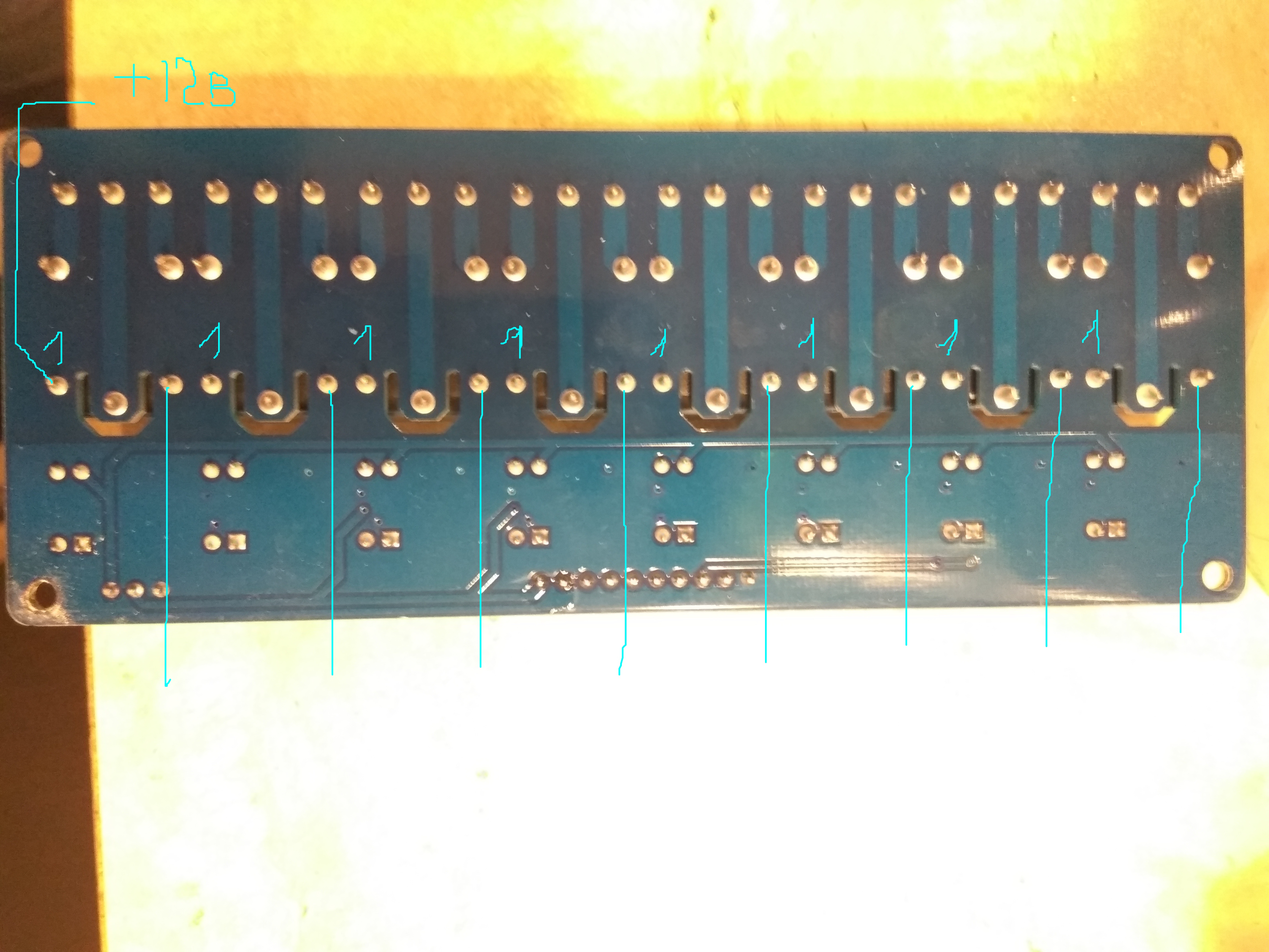 Если это так, то к одному из них вы подводите +12в,а те контакты от которых идут линии вниз - подключаете к выходам на плате, дальше по схеме.