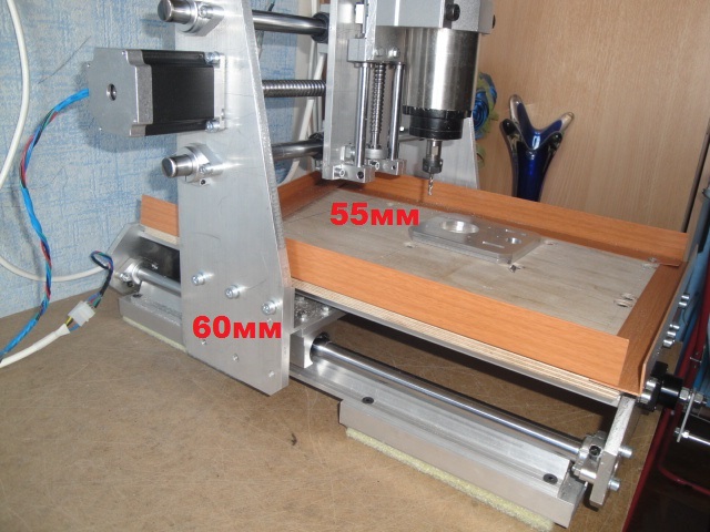 Немного о порталах станка. Сейчас расстояние между нижней точкой порталов оси У и "столика" - 55мм, что обычно вполне хватает для обработки обычных заготовок. Но в хоббийных целях иногда бывает необходимость использовать заготовки и большей высоты. Например, изготовить капот для авиамодели или что-то более объемное. Для этого порталы можно переустановить на большую высоту, в данном случае - на 60мм. После этого можно использовать заготовки высотой до (55 + 60) = 115мм. Также в этом случае можно будет использовать для "сквозной" обработки и 4-ю ось. Конструкции для 4-й оси, продаваемые на Али, обычно имеют высоту центра этой оси 65мм над "столиком".