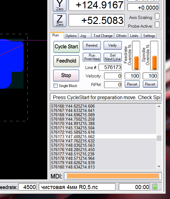 guktu писал(а):Добрый день! Обращаюсь к коллективному разуму! Проблема у меня такая-УП имеет более 900 000 строк, при ручном воде строки и нажатии на кнопку"Run from here" номер строки появляется другой (не тот что вводил), например, ввожу 300000-после "Run..." появляется 210645 (цифры каждый раз разные). Иногда загорается Reset. Маch с лицензией Ивана Тодосевича. Как победить такуя бяку? Не могу продолжить работу-по одному и тому же месту 2 раза пилякать не хочется.