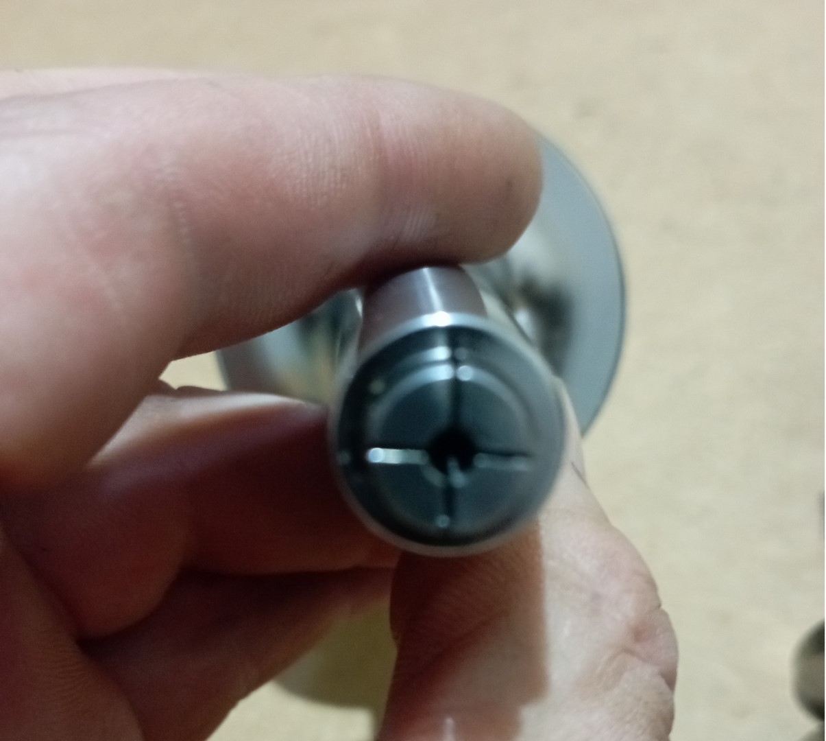 У SDC6 диаметр носика 14,5мм. Наверно меньше чем гайка ER11.