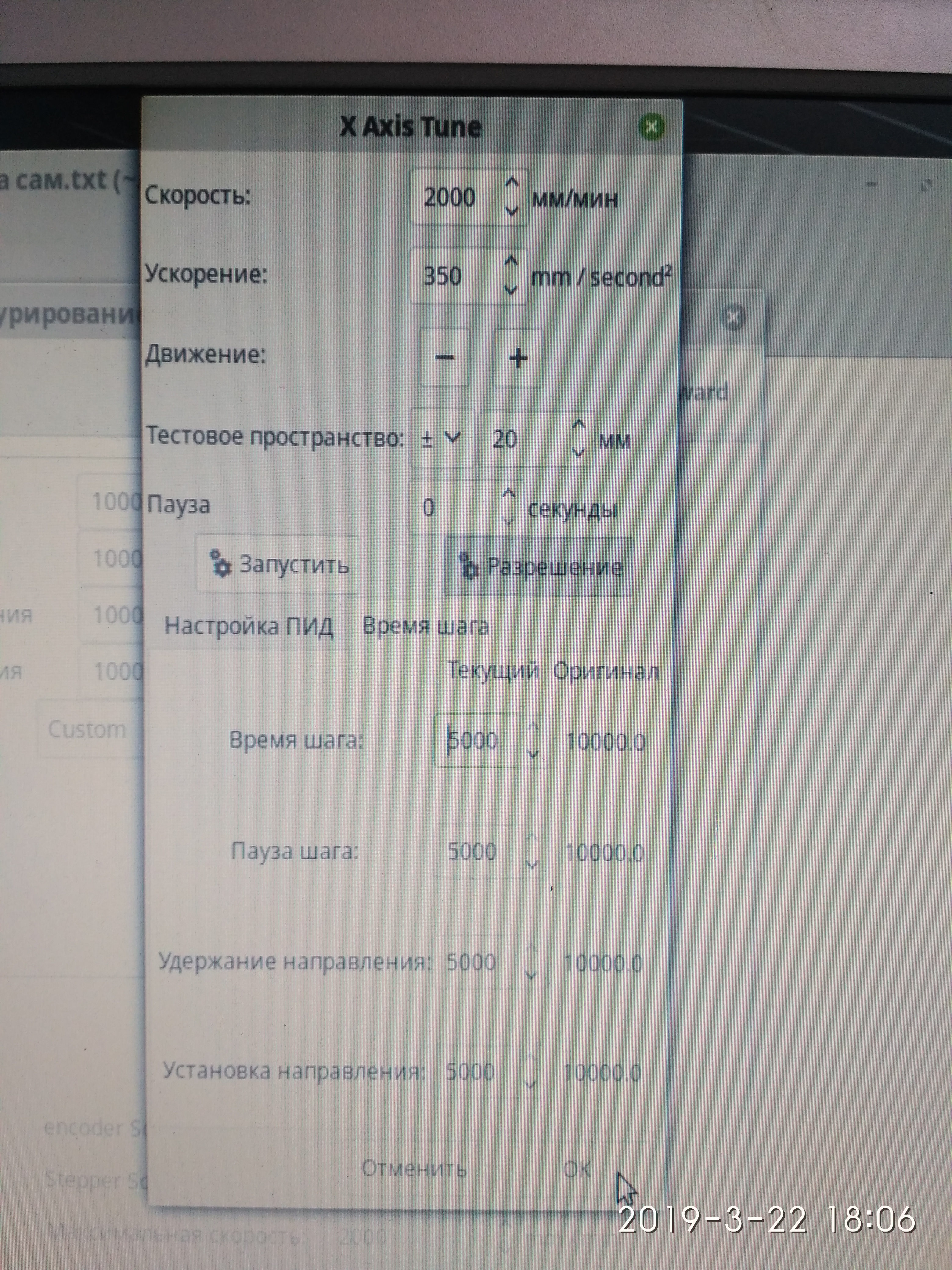 И я уже думаю ну вот оно. Это случилось когда переустановил Линукс и оси крутились на оборот. И какого то ... Я перебросил именно Дир на управлении а не на шаговиках.