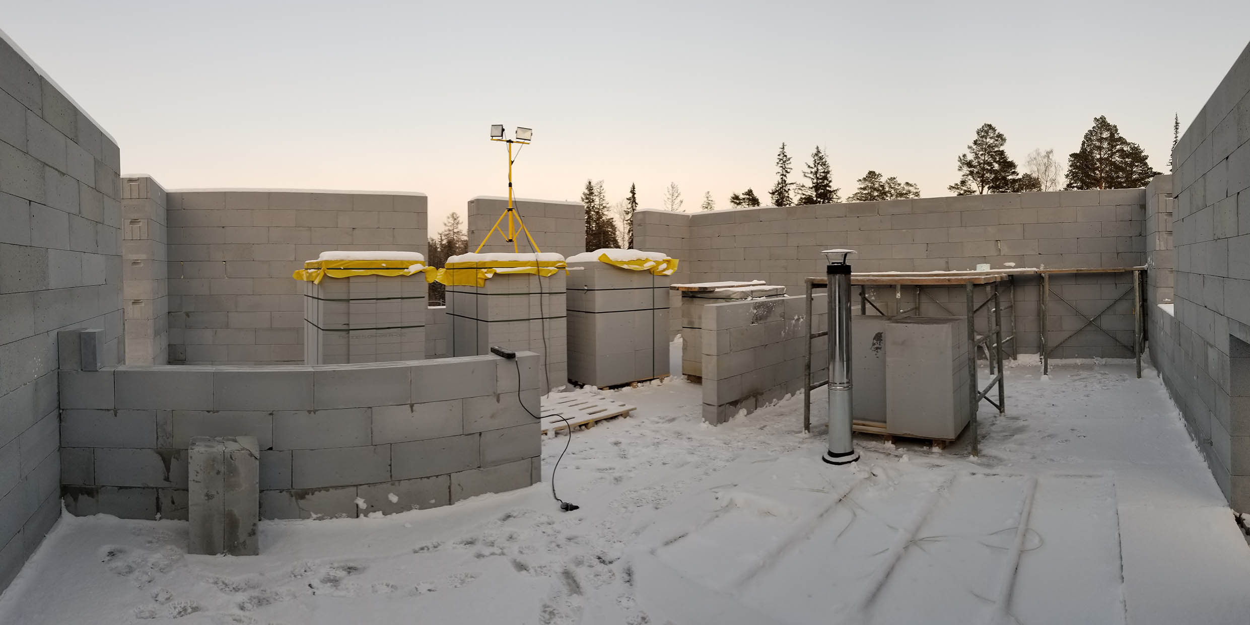 Проблемы зимой были только с тем, что 50% времени я тратил на уборку снега. И очень сложно было разделить смерзшиеся в единую глыбу блоки, сильно промокшие под осенними дождями. Один из поддонов отогревал двое суток, чтобы разделить.