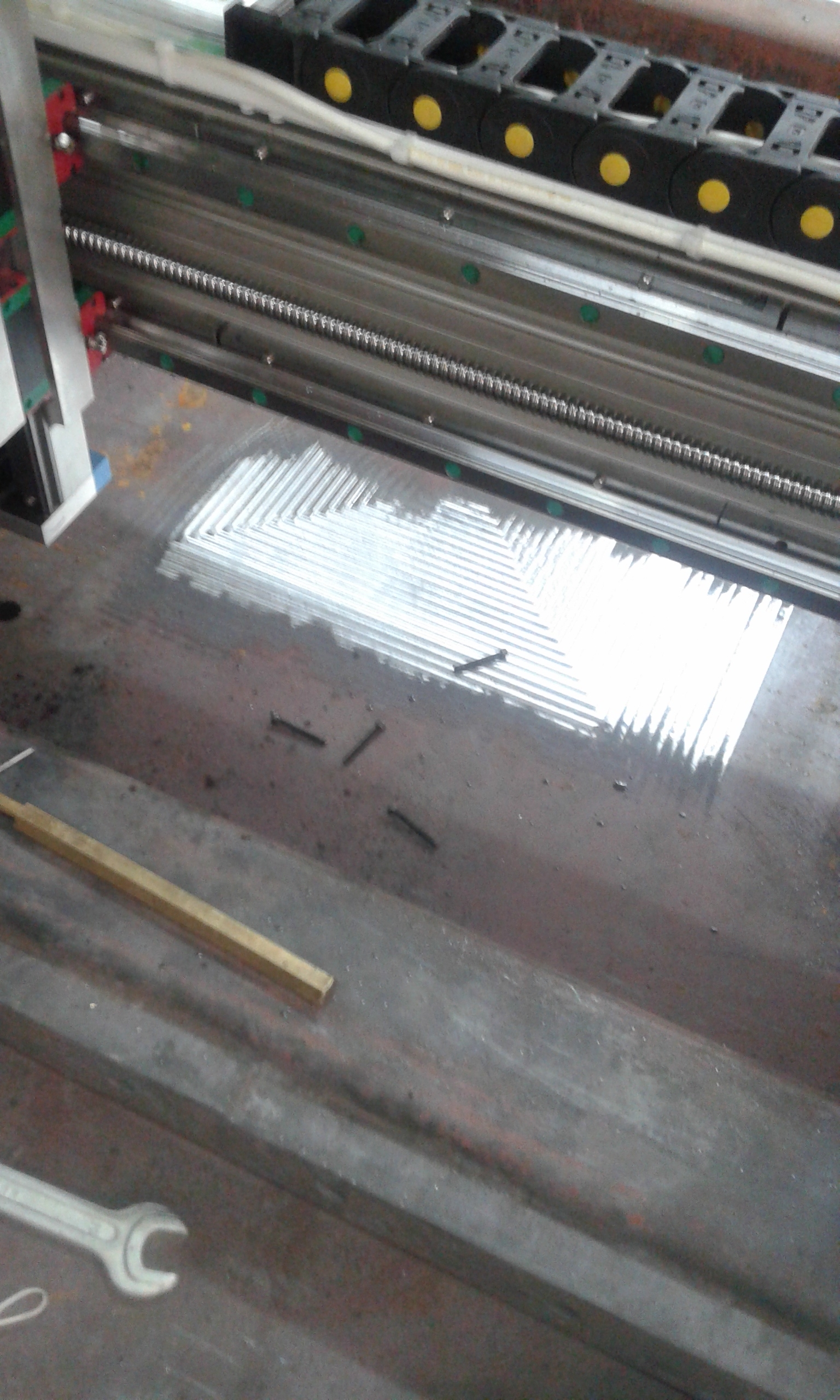 Сейчас плоскость фрезернем достаточную, на нее кладем шлифованную плиту и балеринкой перпендикуляр шпинделя ловим. Небольшие перепадики есть.