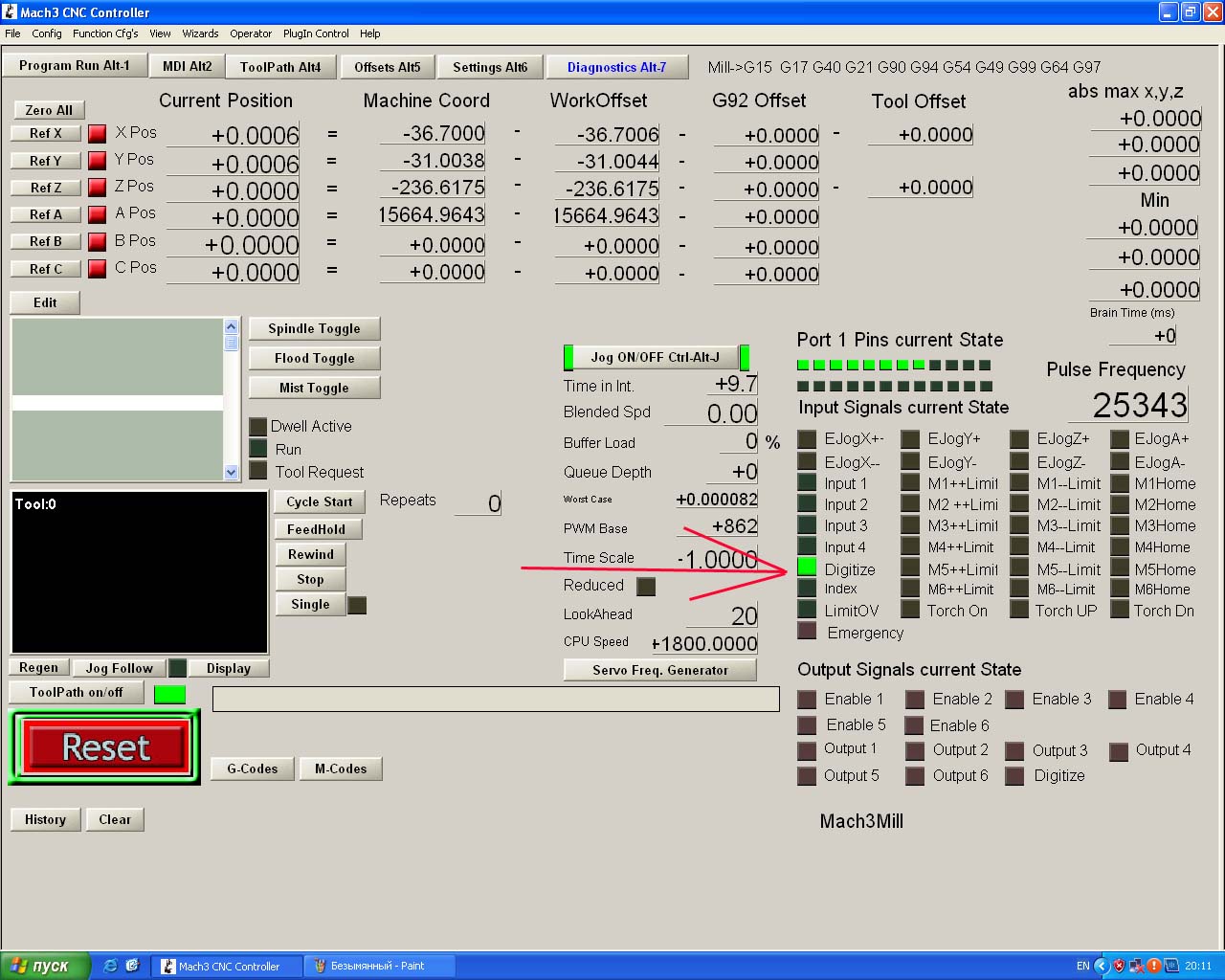 1) подвигайте станок по каждой из осей в режиме MDI, те значения перемещениы, что вы введёте в окне должны соответствовать тому что пройдёт станок в реале.