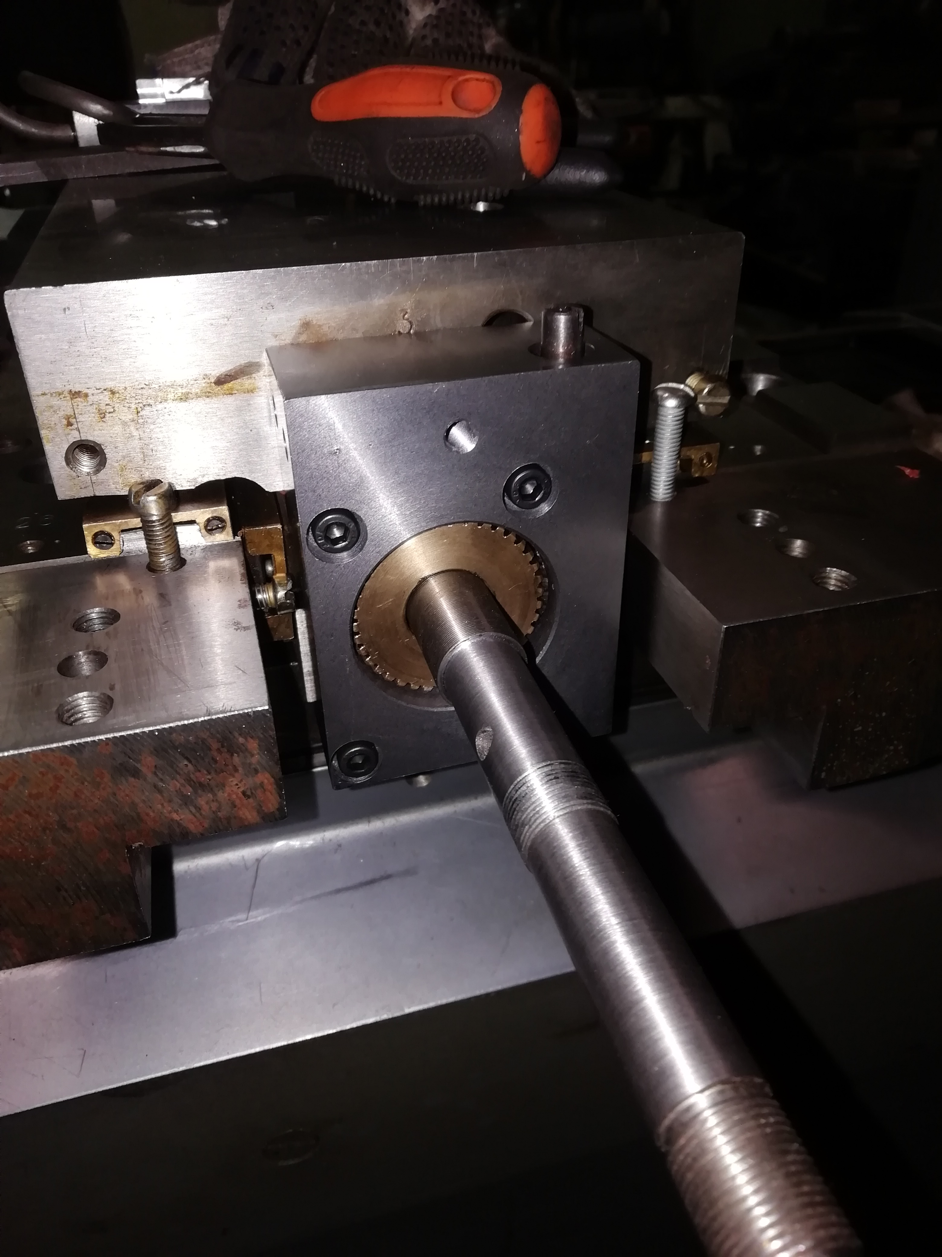 Отмечусь для проформы)) Дела идут, но медленно. Работаем по вечерам над станком и то не каждый день. Помыли весь, установили асинхронник 3квт, энкодер на шпинделя, сделали обе опоры на поперечку и механизм натяга винта. Сейчас занимаемся централизованной смазкой и кожухами ( хотим попробовать сож).