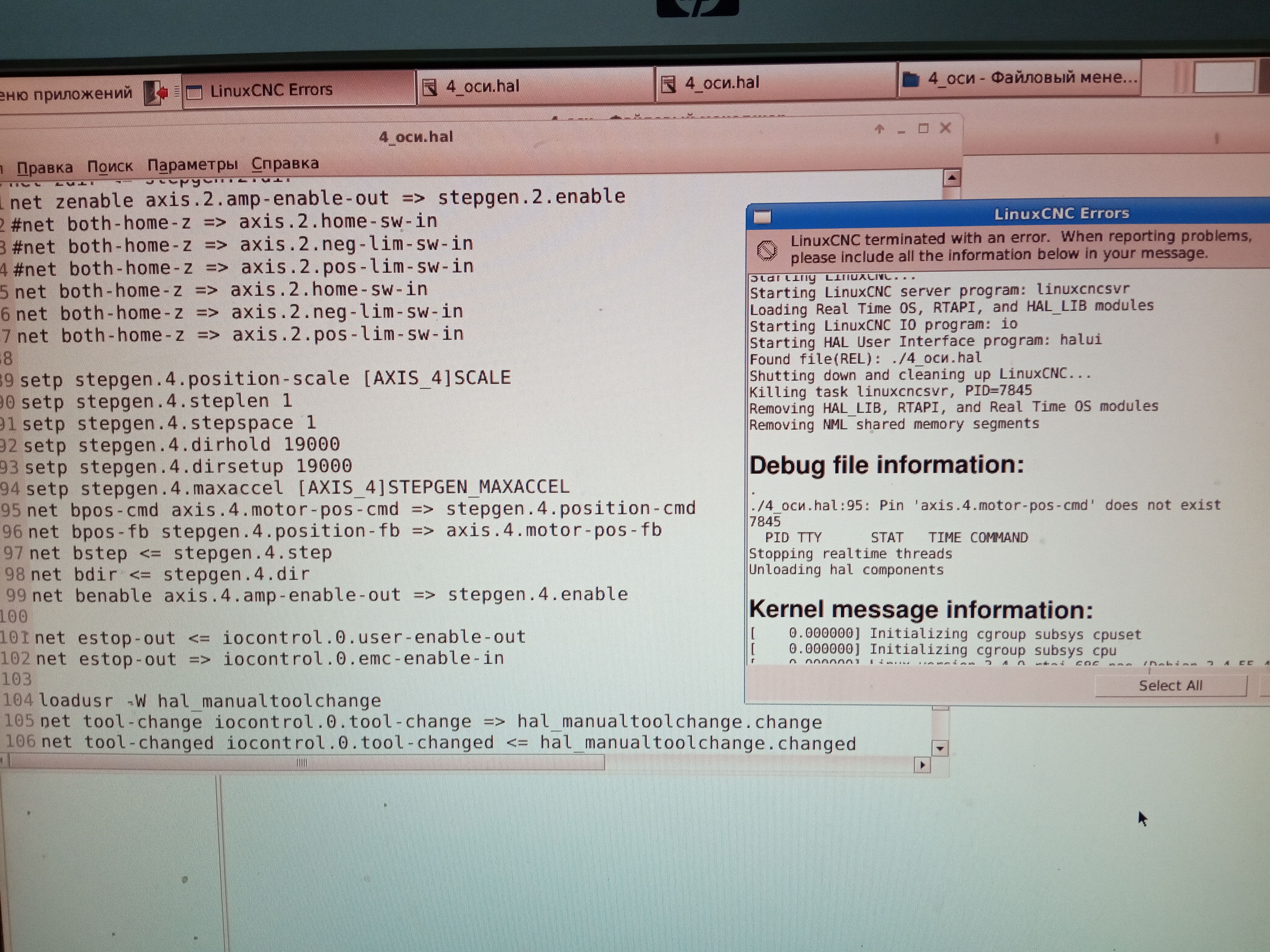 не нравится ему вот это; net bpos-cmd axis.4.motor-pos-cmd => stepgen.4.position-cmd