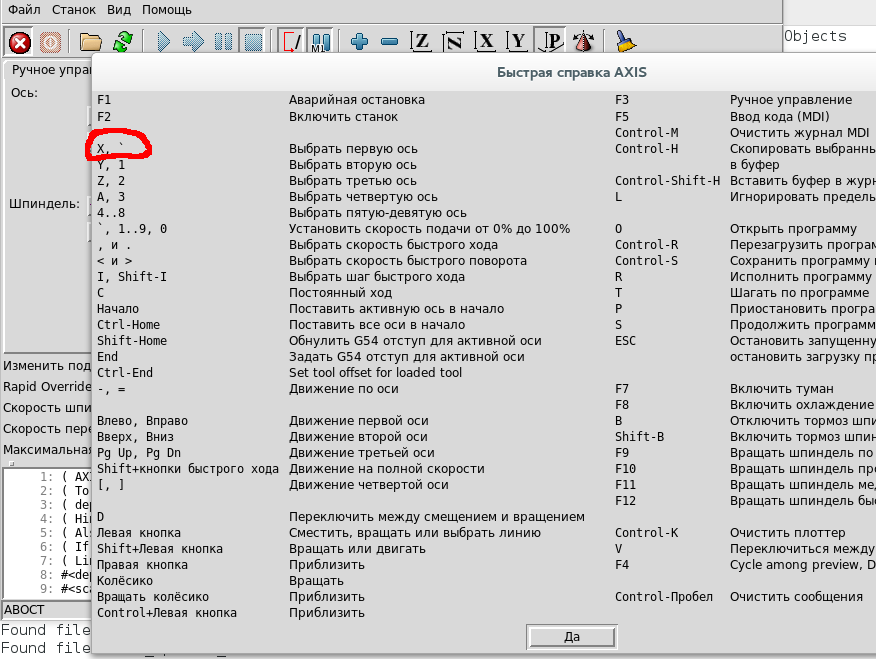 Я это видел. " ' " не переключает на ось Х. Ни одна "буквенная" кнопка не работает, в том числе R,S,T,P,C,I и.т.д