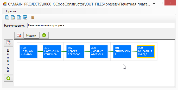 Прежде всего я используя конструктор пресетов, создал пресет с вот такой последовательностью модулей: После этого выбираю пресет.