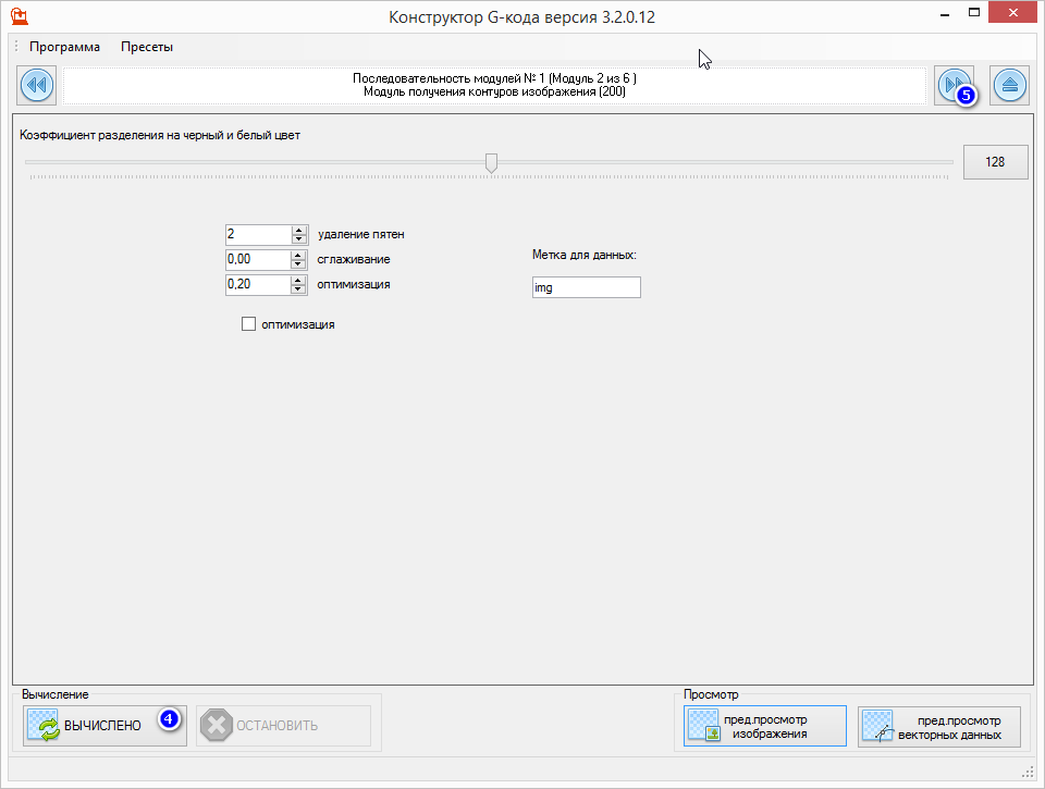 3) переходим дальше 4) нажимаем вычислить, что-бы из рисунка получить контуры