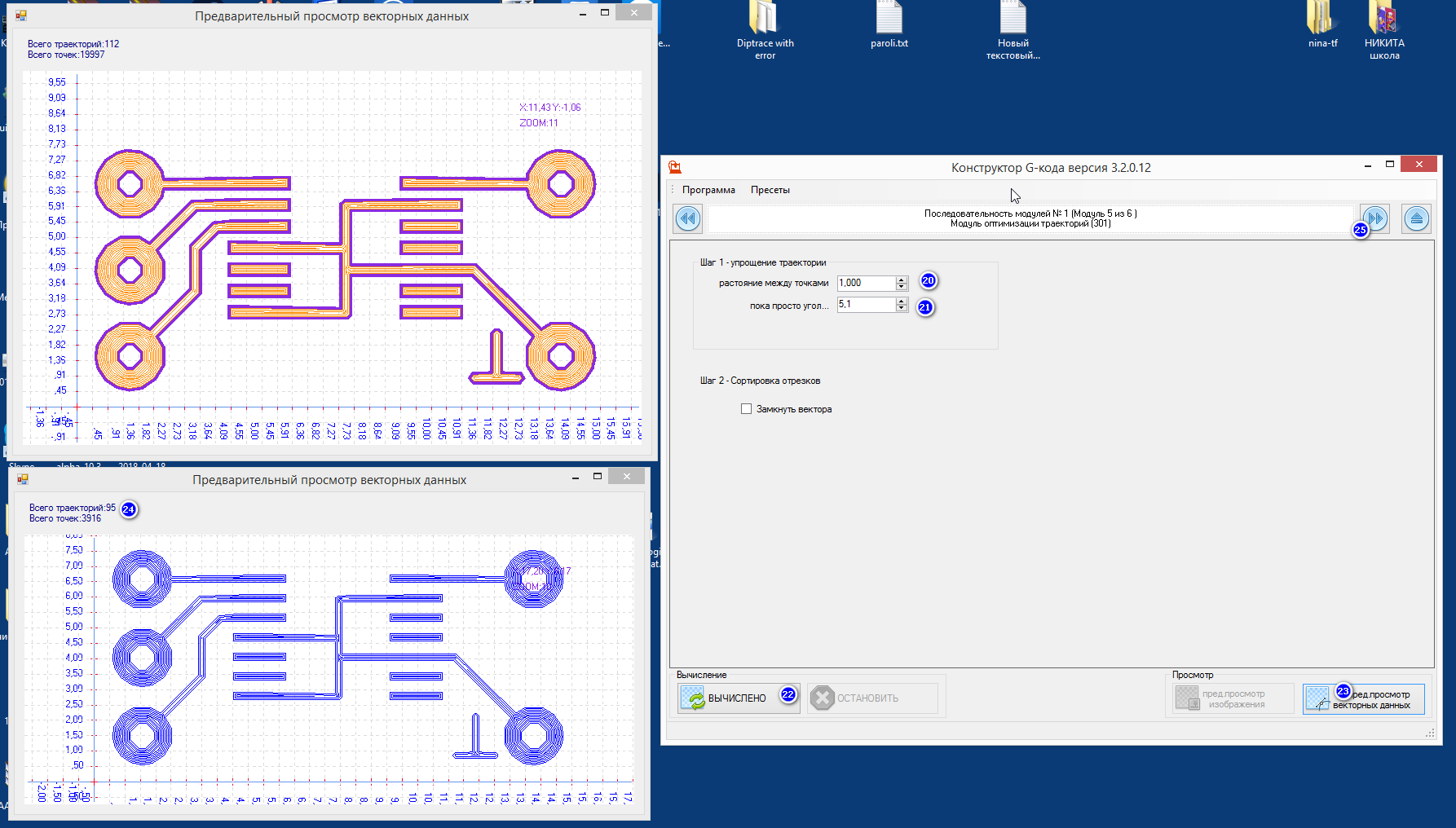 Вот "модуль оптимизации траекторий (301)" - совсем не понял, что делает. Количество точек вроде не меняет. При изменении настроек, "Траекторий 82, точек 99350" в пред.просмотре - не меняется.