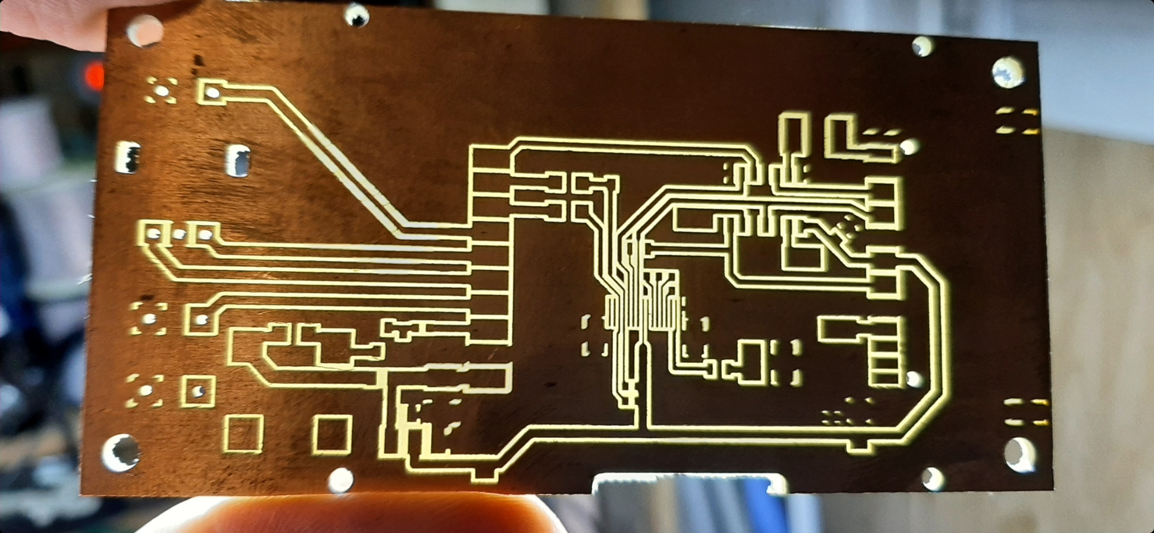 Хочу поблагодарить автора программы и продемонстрировать свой результат. Плата после конического гравера. Гравировка делалась на самодельном станке из дюраля, направляющие - цилиндрические на опоре. В качестве шпинделя используется китайский коллекторник 400Вт с небольшой доработкой для устранения продольного люфта. Для компенсации неровности стеклотекстолита пользовался программой Autoleveler.jar . Расстояние между выводами разъема 0.5мм, ширина дорожек и расстояний между ними закладывались 0.5 и 0.2мм соответственно.