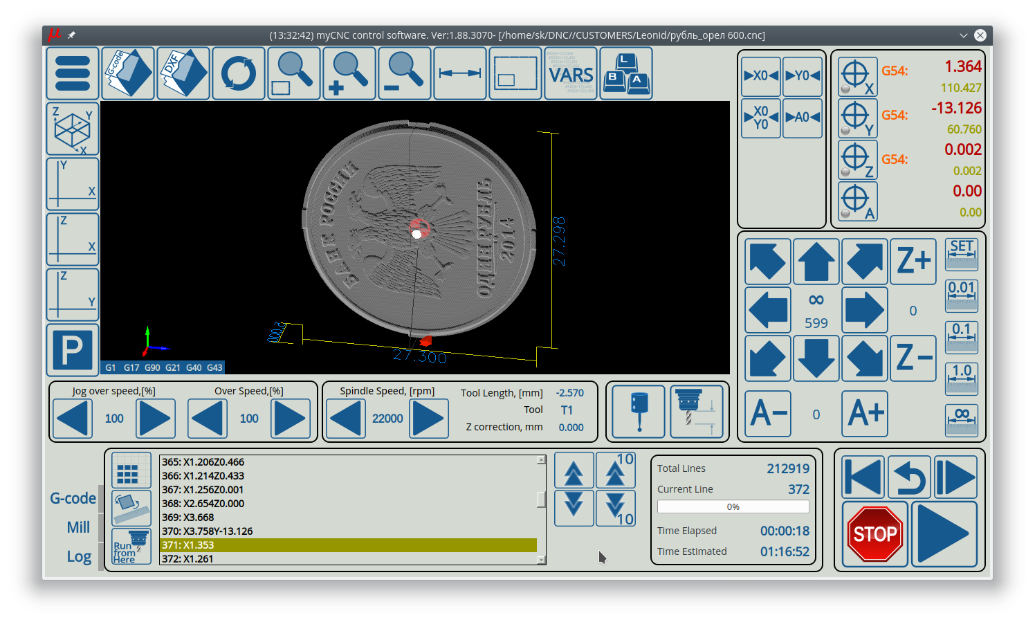 mycnc писал(а):Добавили окошко с индикацией времени - сколько прошло и сколько осталось до конца выполнения.
