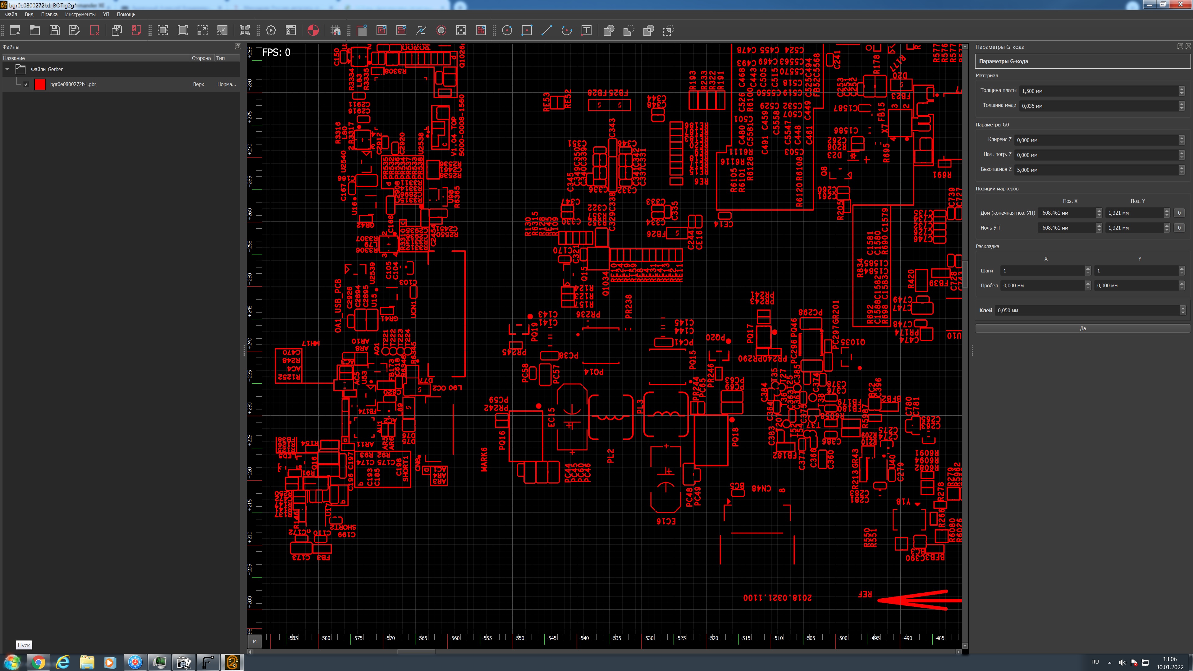 8-ми ядерный процессор, ОЗУ 32 ГБ. Далее интересно - FlatCam 8.994 не открыл в течение 26 мин, больше не стал ждать. Gerber Viewer 2.6a открыл довольно быстро, но хоть какие-то манипуляции делать с файлом практически невозможно - тормоза страшные. Файл, похоже, смастерили с помощью одинаковых 7 файлов...