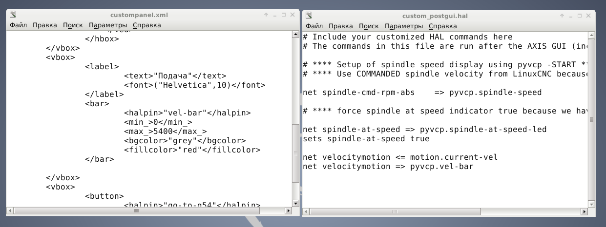 ...pyvcp, но он ограниченный. С помощью gladevcp можно сделать практически всё.antoxa-kylibin писал(а):Какой из интерфейсов более легковесный pyvcp или gladevcp?