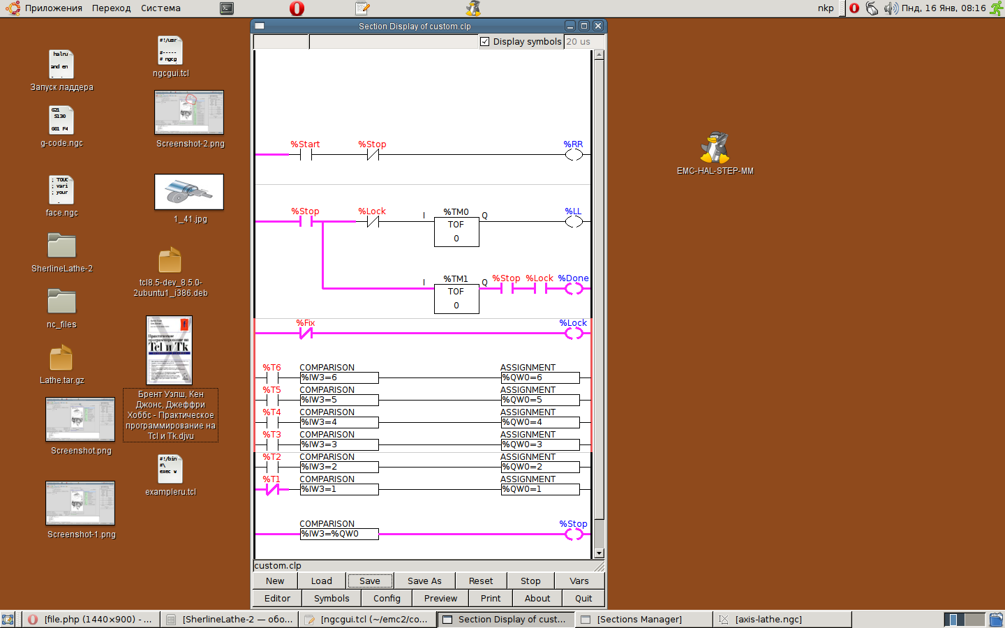 net tool-change iocontrol.0.tool-change => classicladder.0.in-00 # сигнал по М6 посылаем на контакт Start