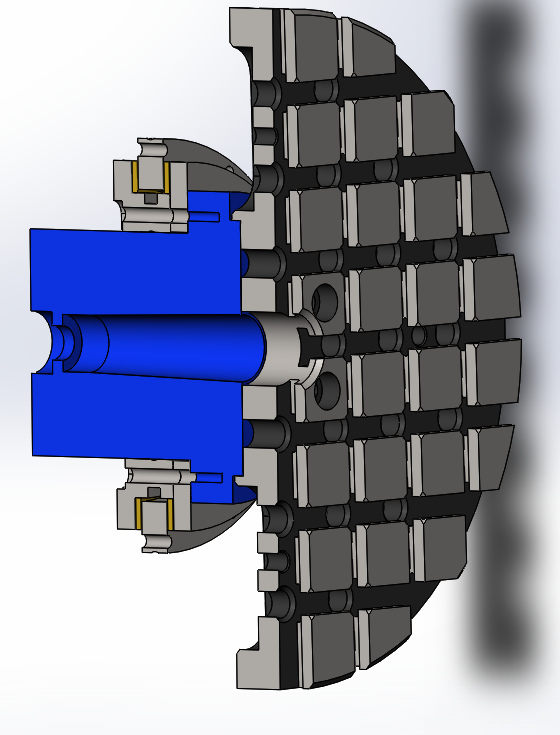 потихоньку рожаю 5 ось, пока что прикидываю как оно будет с подшипником YRT80, в центр планшайбы хотелось бы иметь возможность воткнуть КМ3, но само отверстие в планшайбе скорее всего не позволит втыкать на всю глубину, пока еще толком не проверял..
