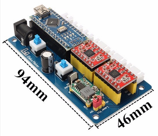 Минимально необходимый набор компонентов присутствует - ардуина нано, 2 драйвера, вторичный источник питания. Никакого колхоза с проводами! Останется только вызвонить - с каких ног ардуины китайцы степ/диры на драйвера завели, кнопки припаять, разработать и залить скетчик. Может даже задействовать 2х-контактные разъемы "Laser" и второй (не разобрать надпись) для подключения кнопок.