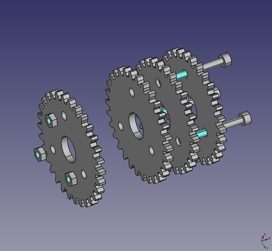 Получается, что одна шестерня будет состоять минимум из 8 кусков (две боковинки и 6 частей на шестерню).
