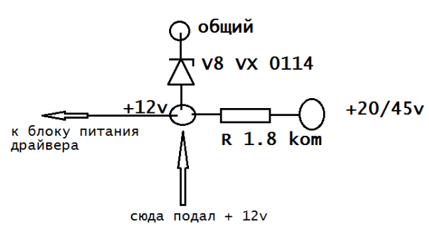 драйвер переморгнул диодиками и загорелся зеленый готов к труду. Это говорит о том что элемент V8 поддерживает +12v.на входе блока питания драйвера.