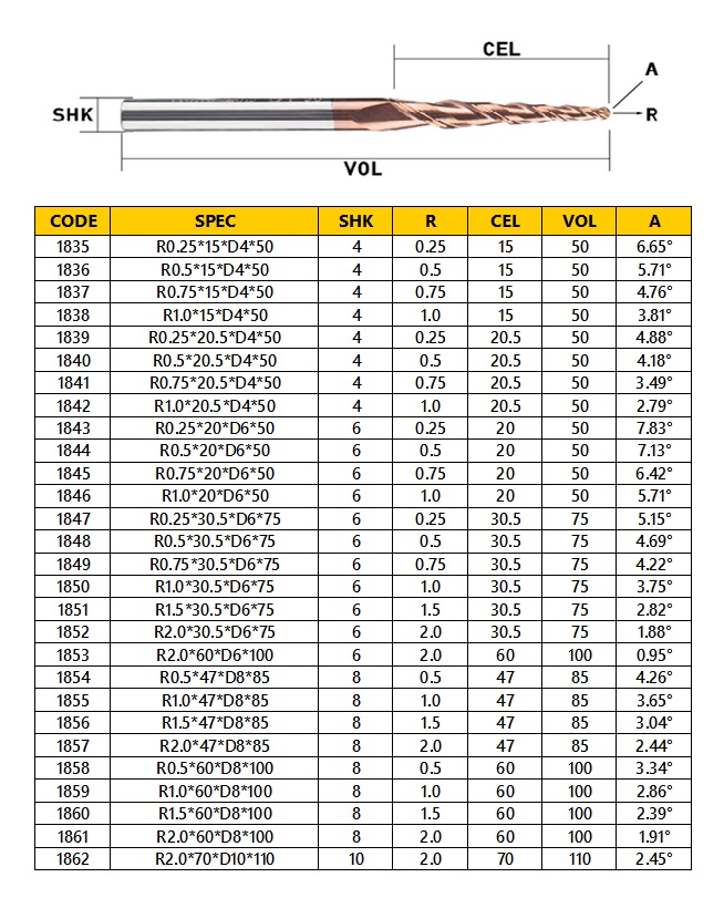 А то у меня фреза R0.5*D4*20.5*50L - такой в таблице нет. Есть только с режущей кромкой 15мм.