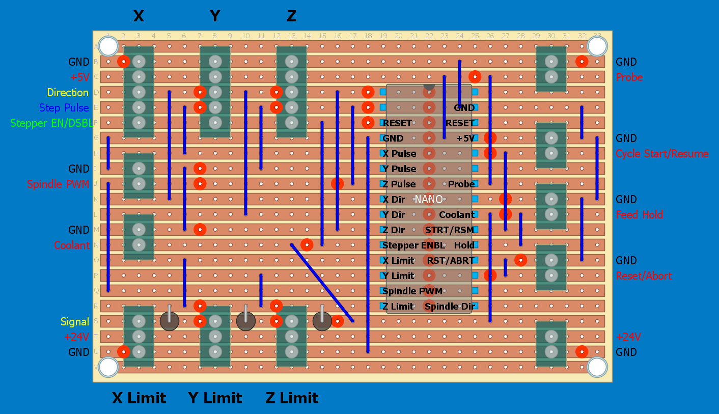 Потом нано была поменяна на уно с самодельным шилдом, а в разрыв на каждую ось вставлена самодельные трёхканальные платы опторазвязки на более-менее шустрых оптопарах H11L1, каналы - STEP, DIR и сигнал удержания осей.