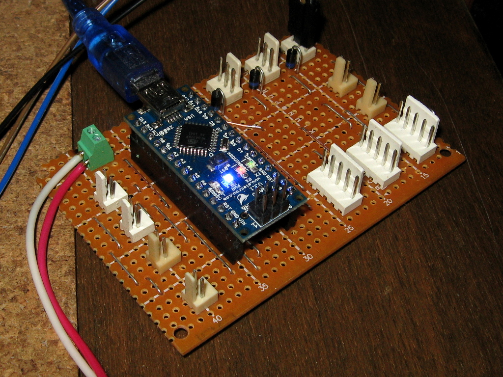 Первоначально для нано ардуины на коленке была собрана такая платка