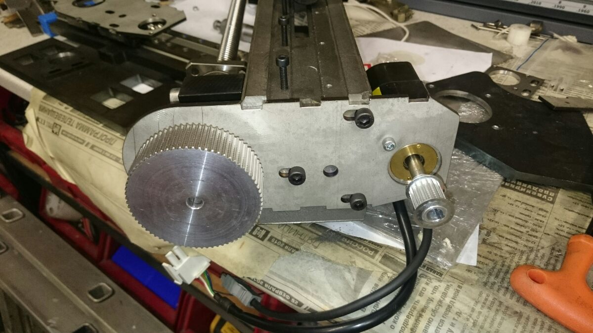 Примерка крепления продольной подачи. Железяки собираются в кучку
